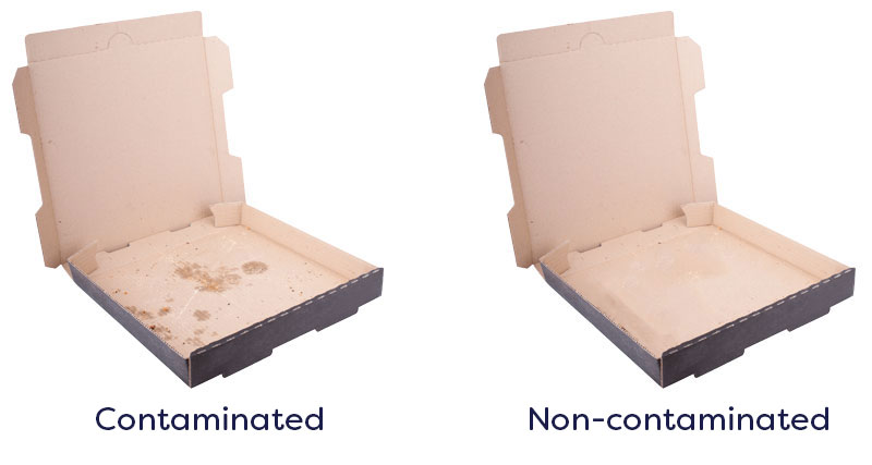 However, the recyclability of a pizza box depends largely on how contaminated it is. i.e. how greasy the box is or what cheesy leftovers are stuck to the box. ‘Contamination’ makes it impossible to recycle the box as the food residue impedes the recycling process.