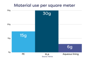PLA is a plant-based compound, usually derived from corn or sugarcane, and is used in many commercially compostable food packaging options, including cups. There are many advantages of an aqueous barrier cup compared to PLA lined cup.